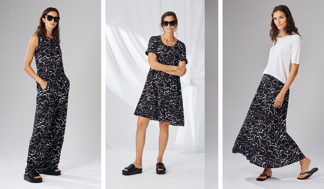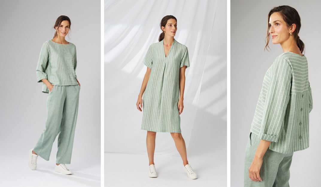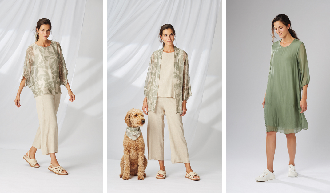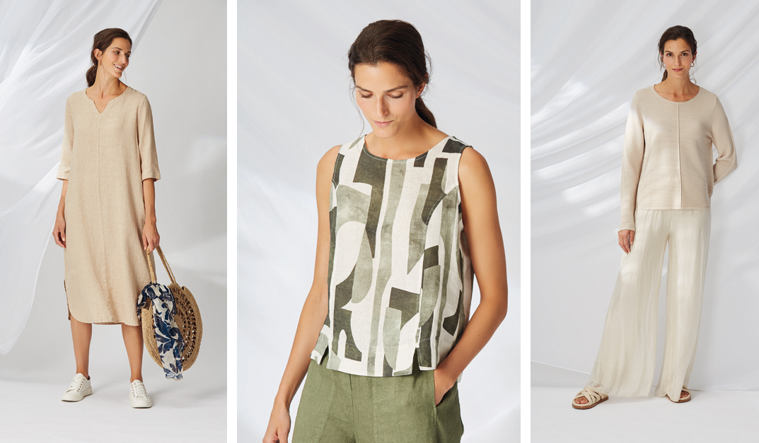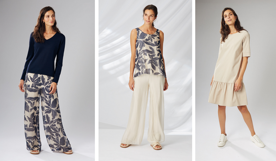 Im Sommer schmeicheln Viscose, Viscose/Leinenmischungen und Baumwoll/Seide-Qualitäten auf der Haut und sind auch bei warmen Temperaturen angenehm zu tragen.