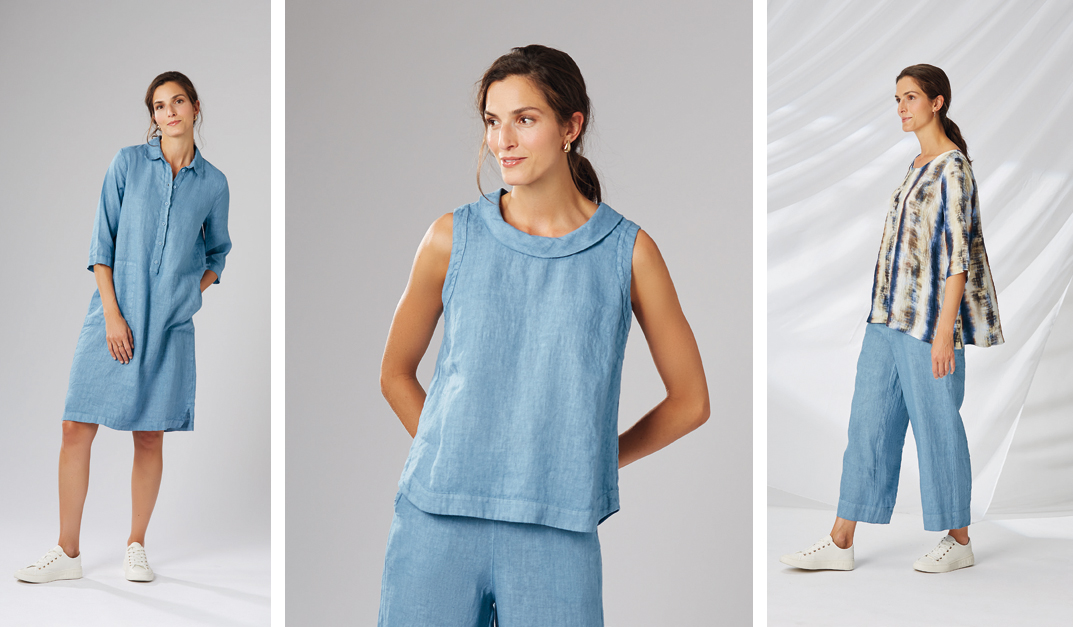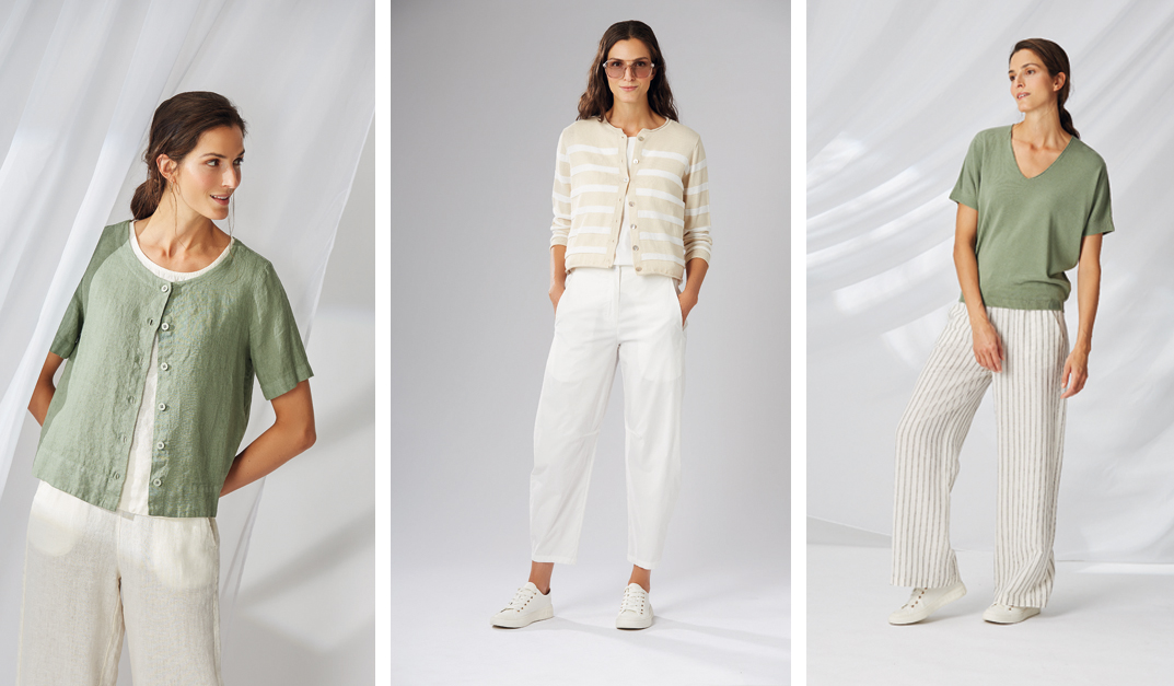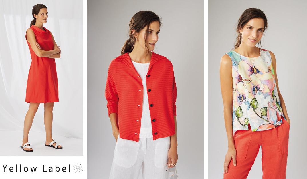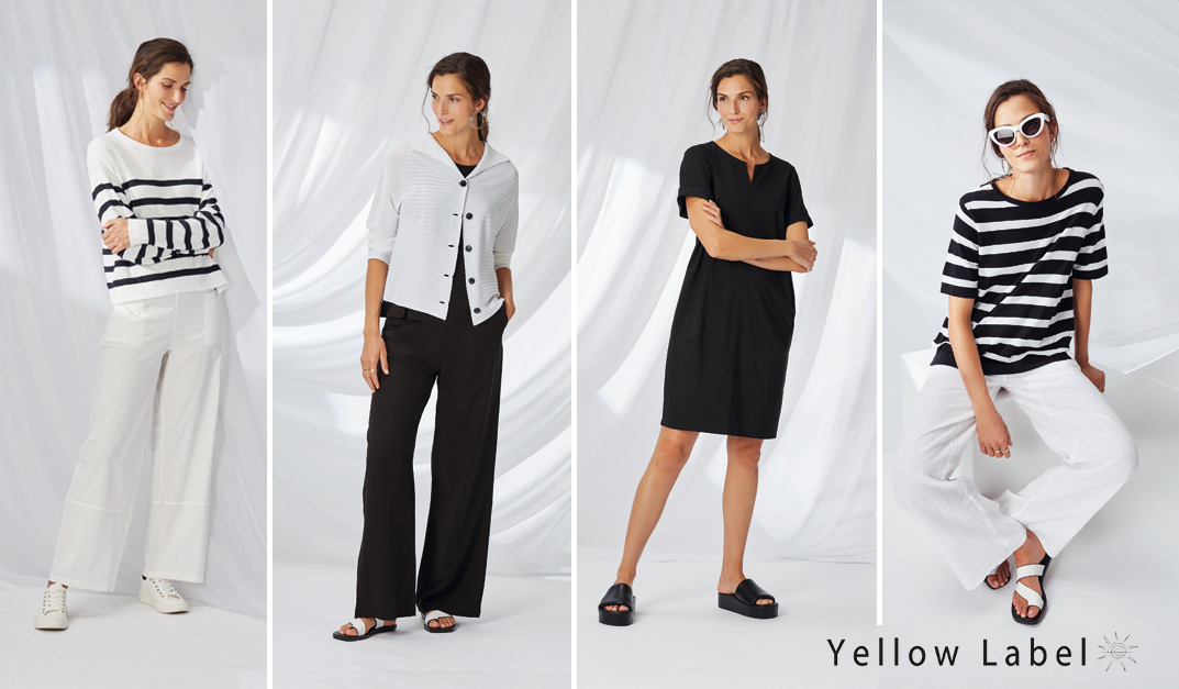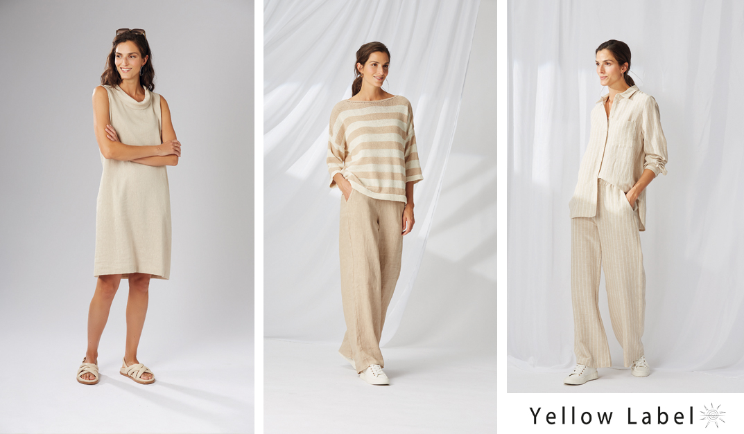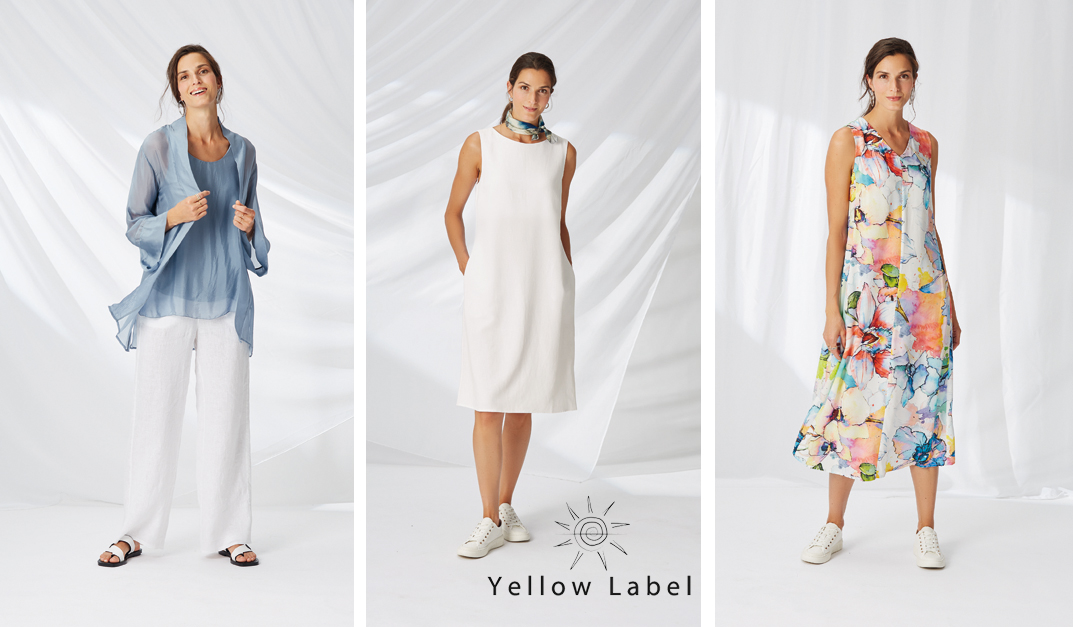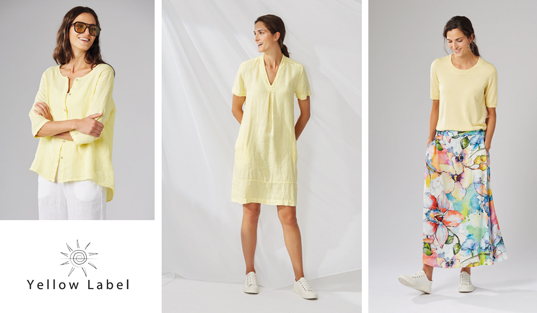 Zusätzlich zum feinen Knitwear bietet YELLOW LABEL im Sommer duftig leichte, gewaschene Leinen- und Paper Cotton- Styles in einer üppigen Farbpalette an.